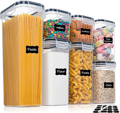 Kitchen 7Pcs Food Containers Set BPA Free Plastic Airtight Storage Box With 10Stickers And Pen