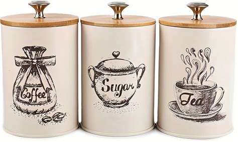3Pcs Canister Set For Kitchen Counter, Coffee Sugar Tea Canister, Metal Vintage Kitchen Containers,