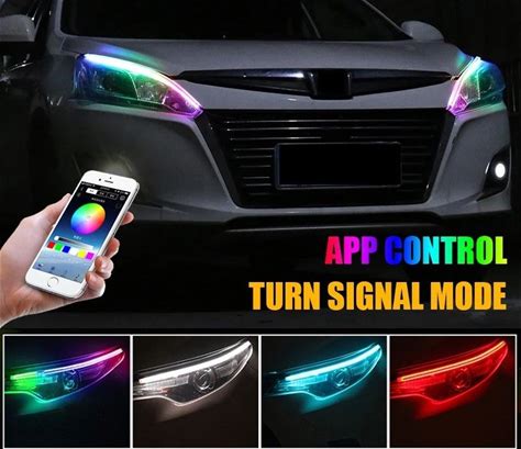 Ultra Thin Car LED Headlight Daytime Running Iridescent Light Eyebrow Strip With APP Controller 30cm