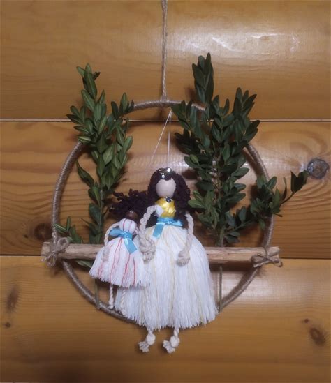 Macrame Dolls.Dolls Mom With A Child From Threads Using Macrame Technique. Personalized Dolls. Macrame Figurines. A Gift To The Family.