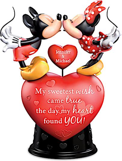 Disney Mickey Mouse And Minnie Mouse Hand-Painted Heart-Shaped Sculptural Figurine Adorned With A Romantic Sentiment And Personalized With 2 Names By The Bradford Exchange