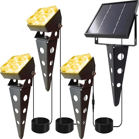 Mii-PWR Solar Spotlights Outdoor Waterproof IP65 Landscape Spot Lights With Metal Stake 42ft Cable 3-In-1 Warm White Auto On/Off Dusk To Dawn Flag