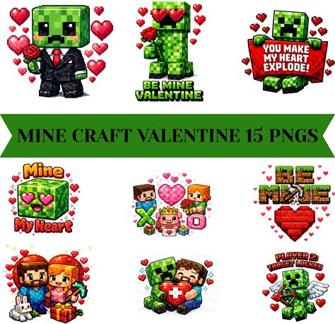 Minecraft Valentine Pngs, Minecraft Valentines Clipart, Minecraft Love PNG, Couple & Heart Design, Valentine Printable Digital Download