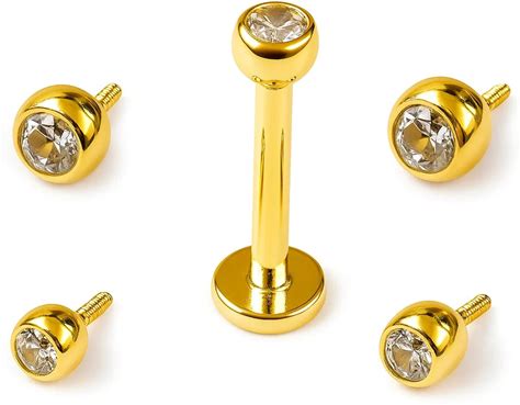 14K Gold Labret Piercing: 16G Gem Crystal Internally Threaded Stud
