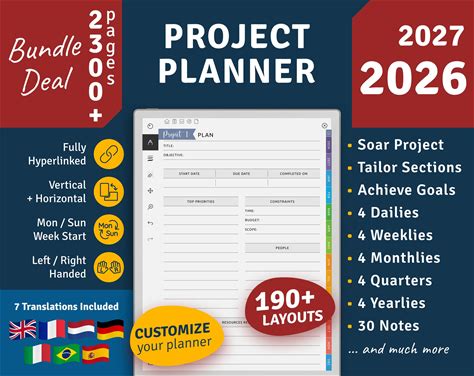 2026 + 2027 Project Planner For Remarkable Tablets, Hyperlinked PDF Template