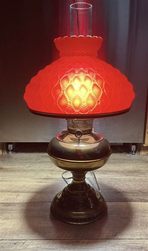 Vtg Rayo Converted Oil Lamp W Fenton Satin Cranberry Quilted Shade Parlor Lamp. Rayo Fenton. Satin Cranberry. Lamps.