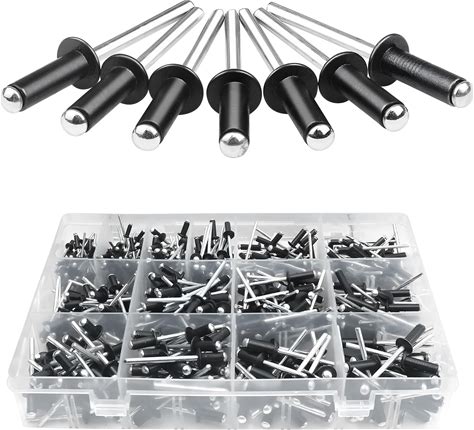 500Pcs Black Pop Rivets Assortment Kit, 14 Sizes Aluminum Rivets 3/32" 1/8" 5/32" 3/16" 1/4", Assorted Blind Rivets With Case For Metal, Marine Boat,