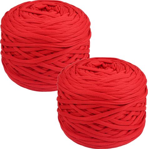 2 Rolls DIY T-Shirt Yarn Elastic Fabric Cloth Yarn Spaghetti Yarn Knitting Crochet Projects Hide Powder