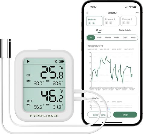 Freshliance Temperature Humidity Data Logger Recorder Bluetooth With 2Pcs External Probe, Digital Refrigerator Thermometer Hygrometer, Remote Data